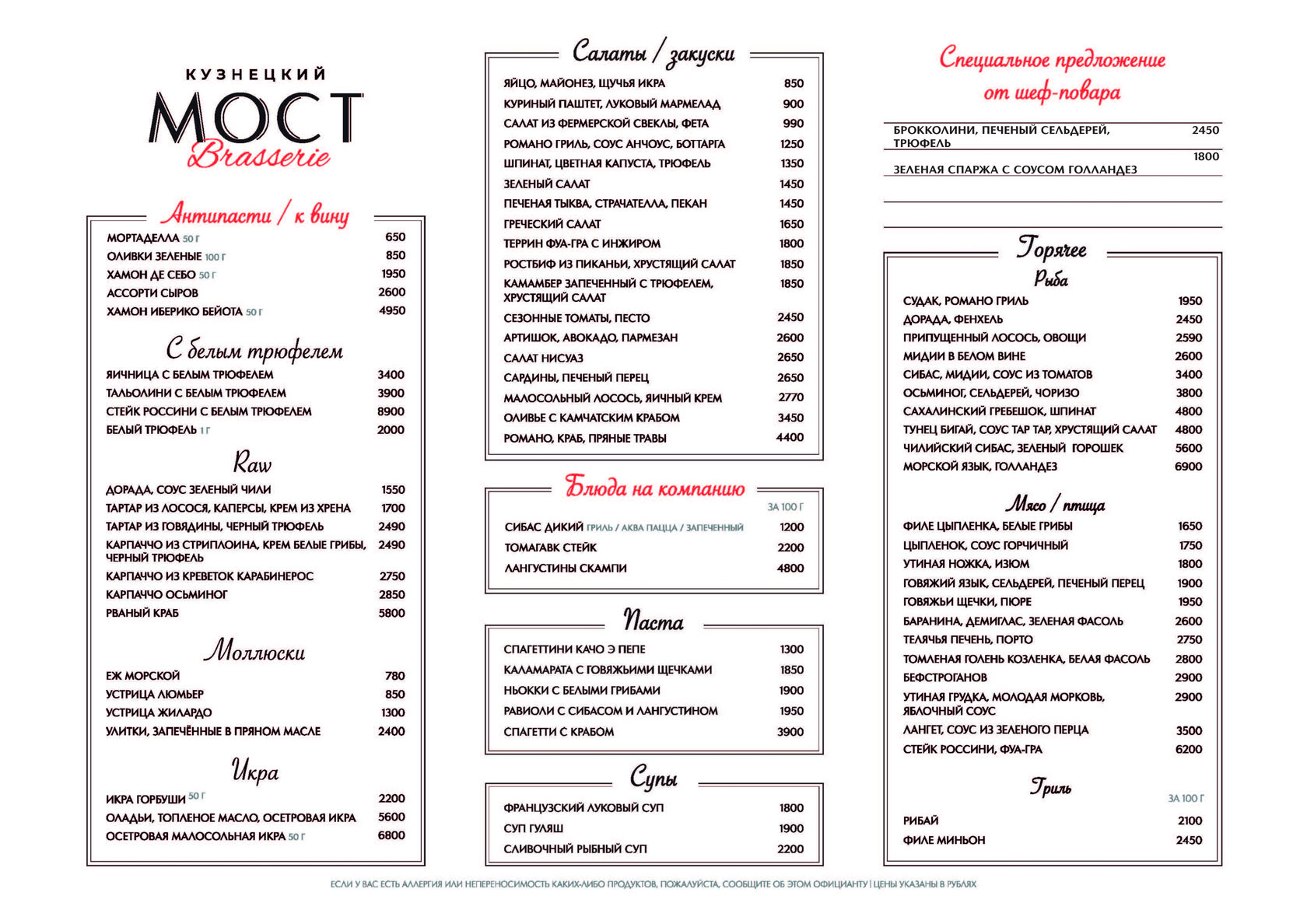 Brasserie Мост Avia - меню и бортовой кейтеринг для частной авиации